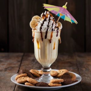- Garnissez : Ajoutez de la crème fouettée sur le dessus du milkshake. Saupoudrez de copeaux de chocolat ou ajoutez quelques morceaux de biscuit pour une touche gourmande supplémentaire.